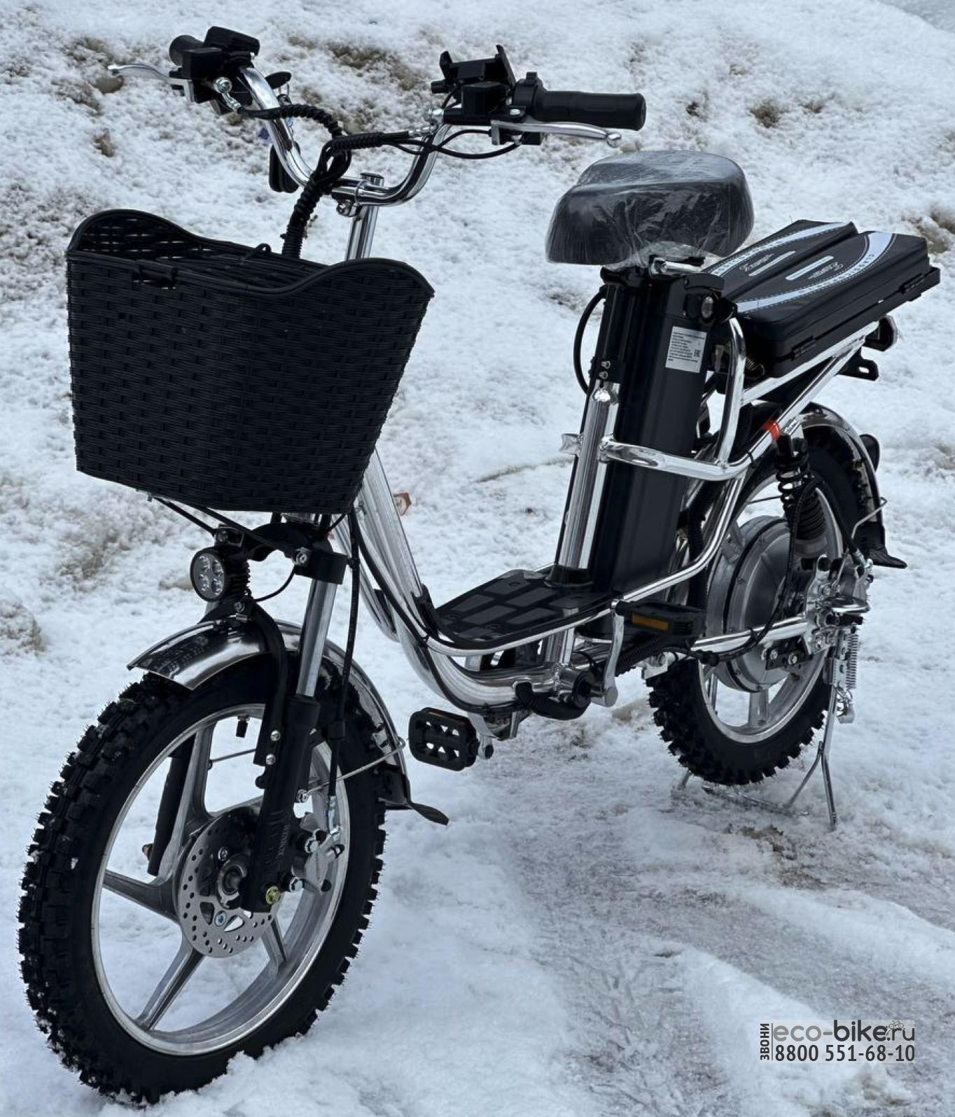Теперь не нужгно думать о безопасности вашего электровелосипеда. Ведь встроенная сигнализация при дотрагивании до велосипеда начинает очень громко орать и сигнал отпугнет любого, посмевшего тронуть ваш электровелосипед. Для курьерских электровелосипедов, которые оставляются у подьезда, очень нужная опция и она уже встроена в эту модель.