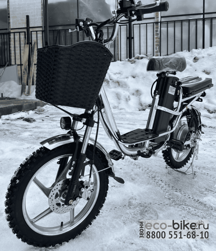 Электровелосипед Gbike V10 PRO ZIMA - новая универсальная модель курьерского электрического велосипеда, с мощным двигателем, новыми колесами и корзиной. Мотор 500W позволяют набирать скорость до 50 км/ч. Емкий аккумулятор держит заряд до 75 км без подзарядки. Безопасное и плавное торможение обеспечивает барабанная тормозная система. Время зарядки занимает не более 8 часов. Электровелосипед выдерживает нагрузку до 140 кг, при это вес самого велосипеда всего 27 кг.
